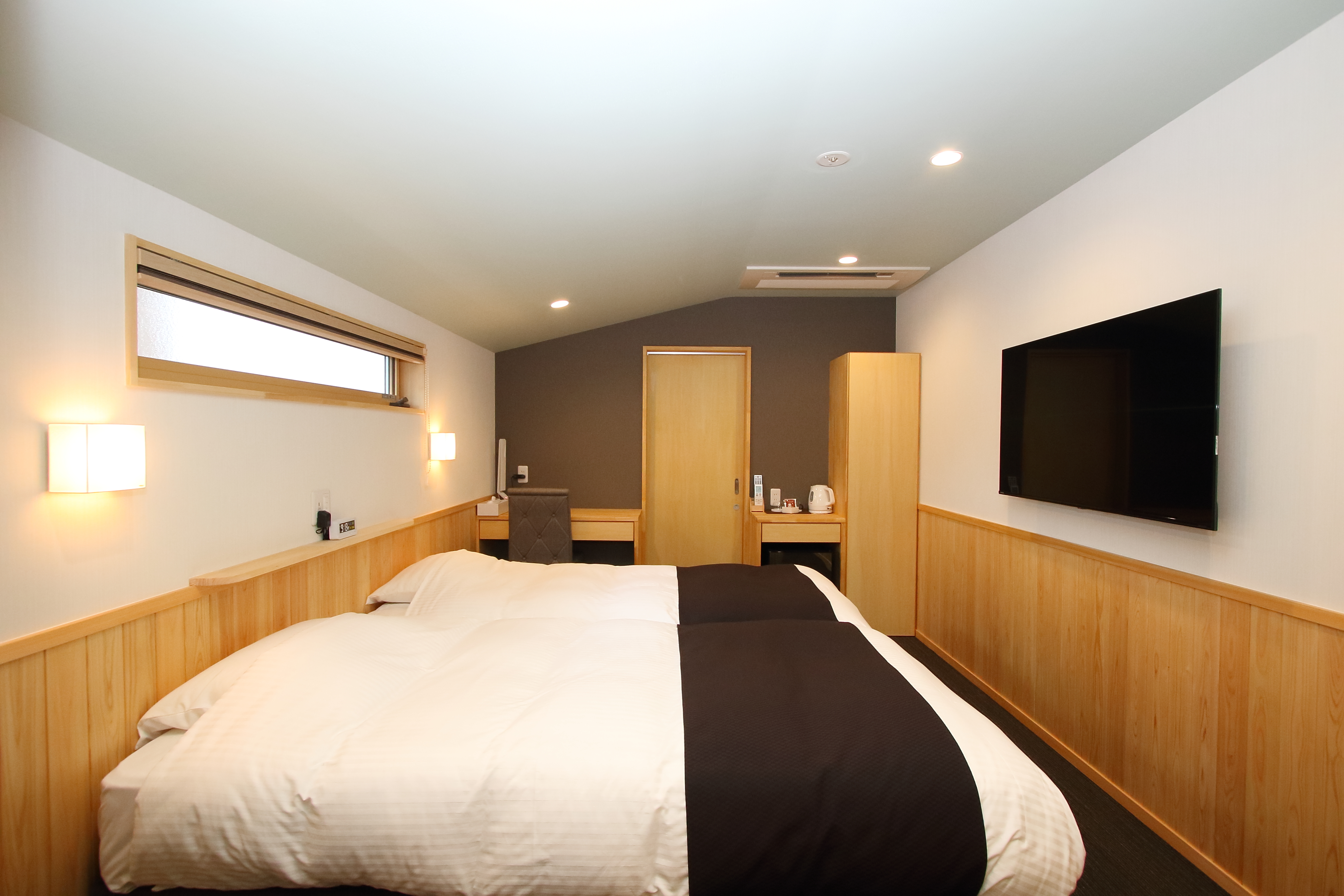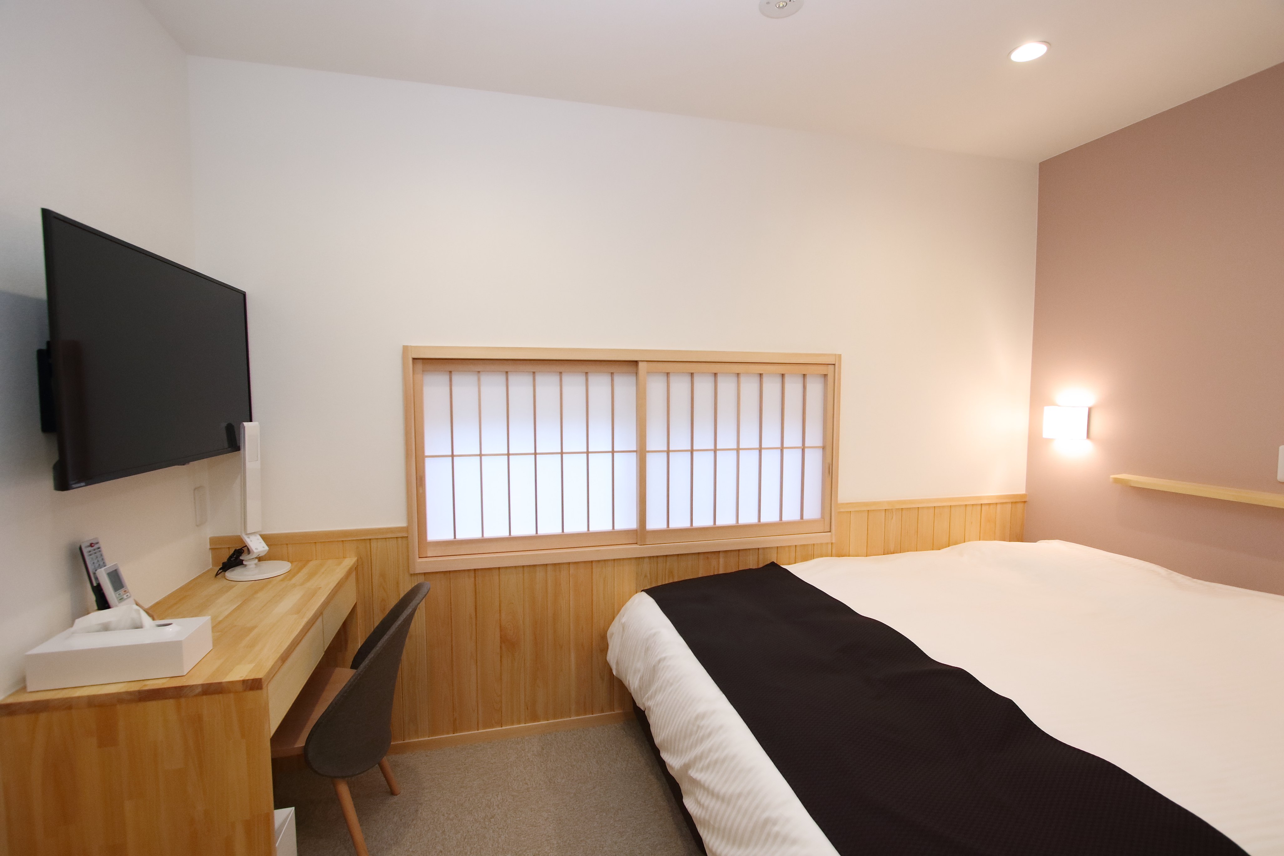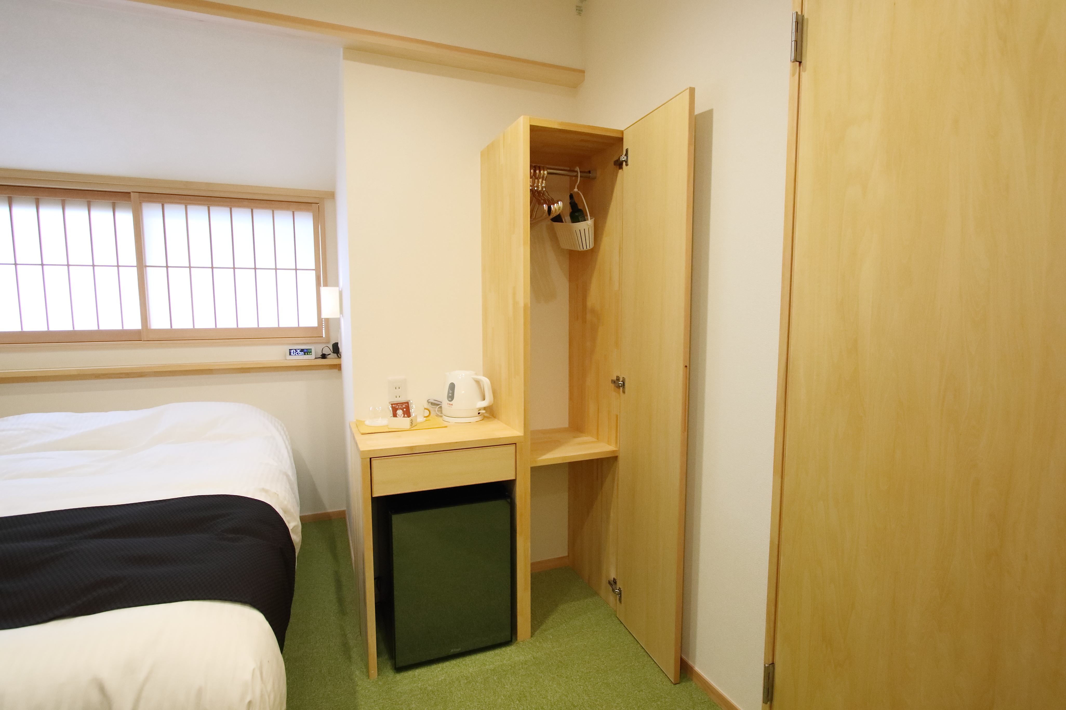 | Facilities | Shower / Washlet Toilet (Separate from the bath room) / Bed: Double (Serta Brand Mattress, Feather Duvet, Feather Pipe Pillow) / Wi-Fi / 40-inch Digital TV / Air Conditioning/Heating / Humidifier Air Purifier / Refrigerator / Desk and Desk Chair / Electric Kettle / Desk Lamp / Tabletop Mirror / Hanger / Radio Clock (Alarm) / Luggage Rack / Charging Cable / Flashlight |