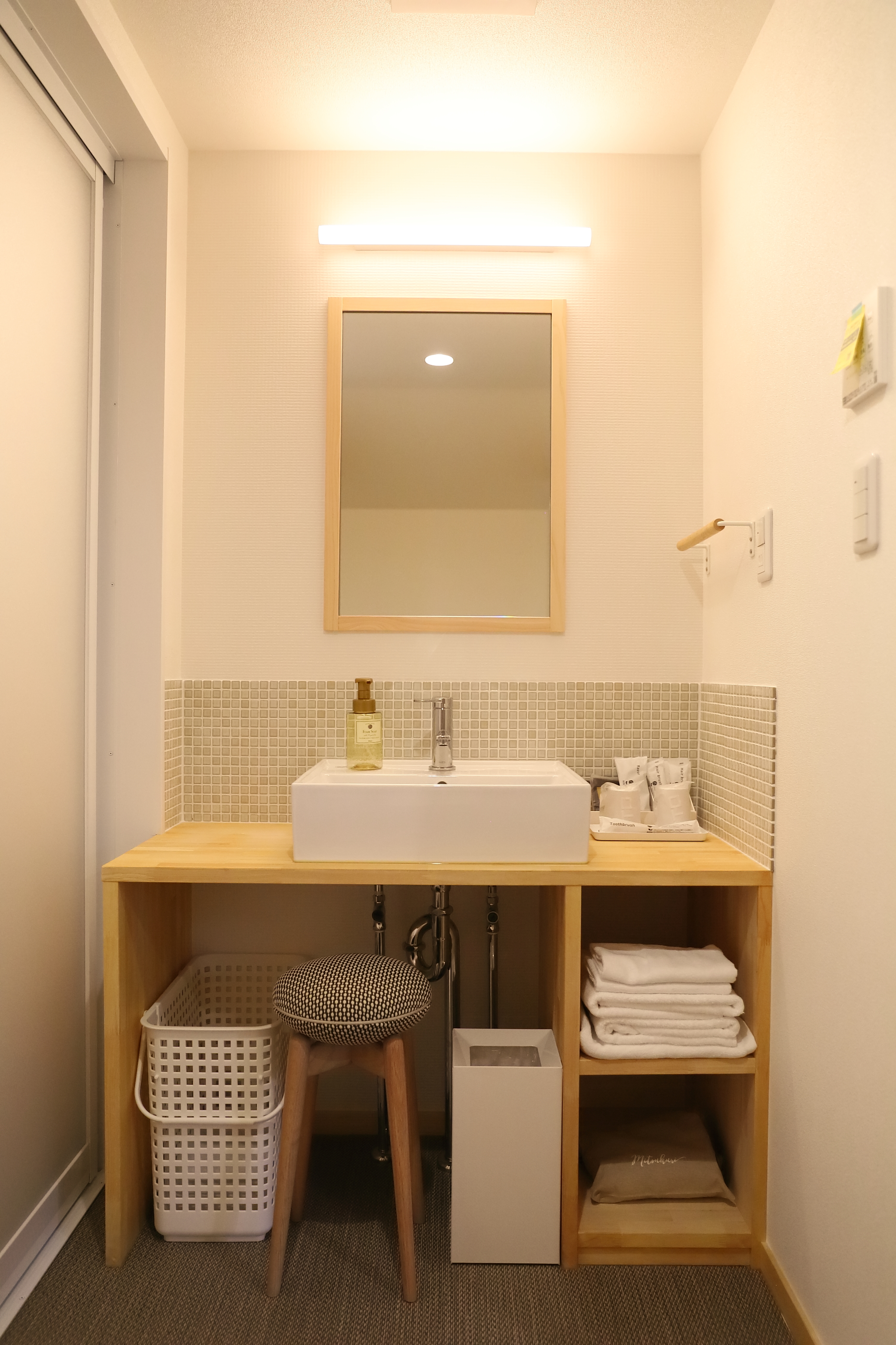 | Facilities | Shower / Washlet Toilet (Separate from the bath room) / Wi-Fi / Futon (Feather Duvet, Five-Layer Mattress, Feather Pipe Pillow) / 50-inch Digital TV / Wooden Low Table / Cushion / Air Conditioning/Heating / Humidifier Air Purifier / Refrigerator / Electric Kettle / Desk Lamp / Tabletop Mirror / Hanger / Radio Clock (Alarm) / Luggage Rack / Charging Cable / Flashlight |